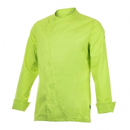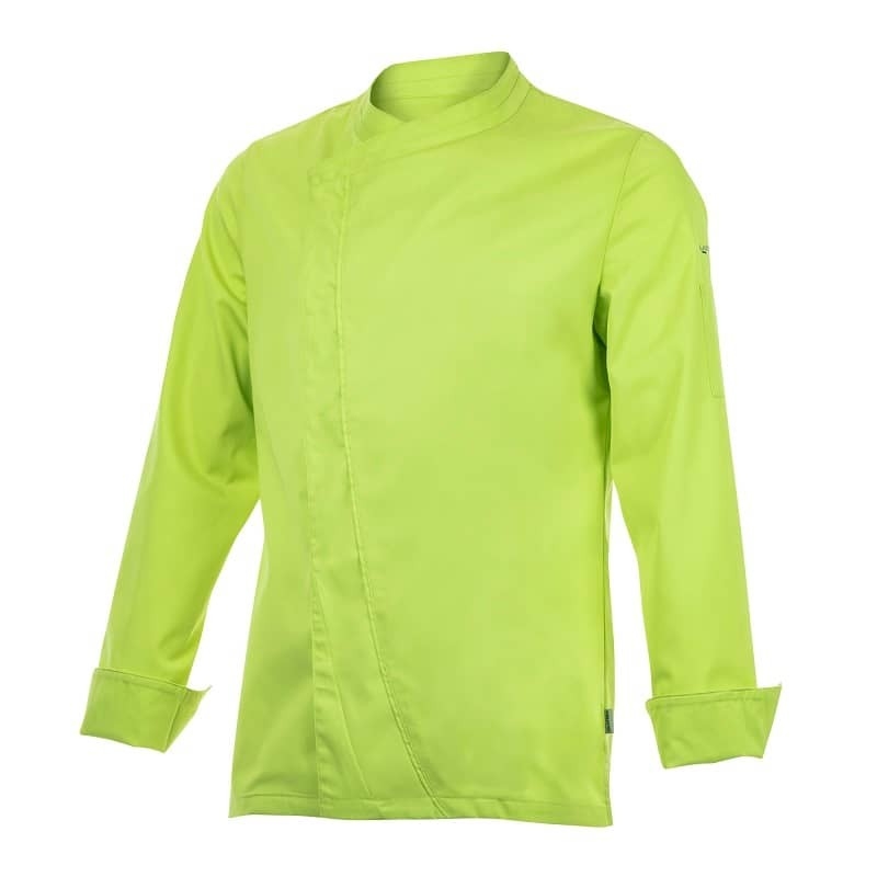 Veste de cuisine Mint pour homme. Cette veste de cuisine de la marque Lafont dispose de manches longues au bas fendu, d'une fermeture asymétrique par gripper cachés, deux fentes sur les côtés pour plus d'aisance, et des oeillers d'aération sous les bras.