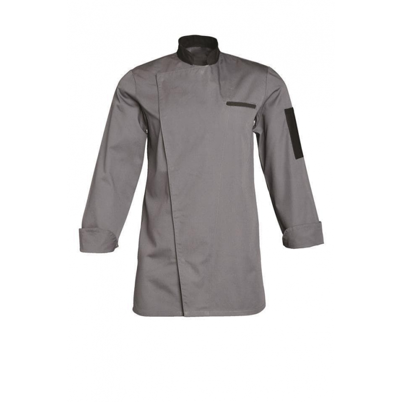 Veste de cuisine Florent pour homme en 65% Polyester 35% Coton. Cette veste de cuisine manches longues possède un col officier ainsi qu'une poche intérieure contrastée d'un liseré de couleur. Disponible en deux coloris différents.